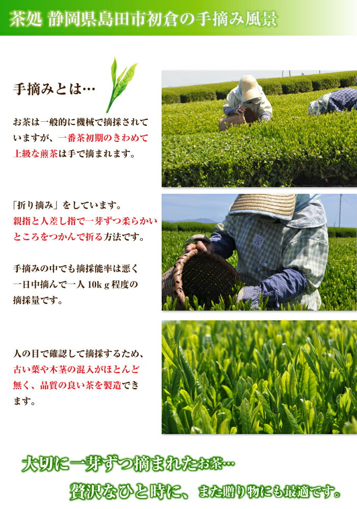 【ポスト投函便送料無料】手摘み100g 最上級煎茶ギフトの解説 当店で扱う煎茶では最高級のお茶です。